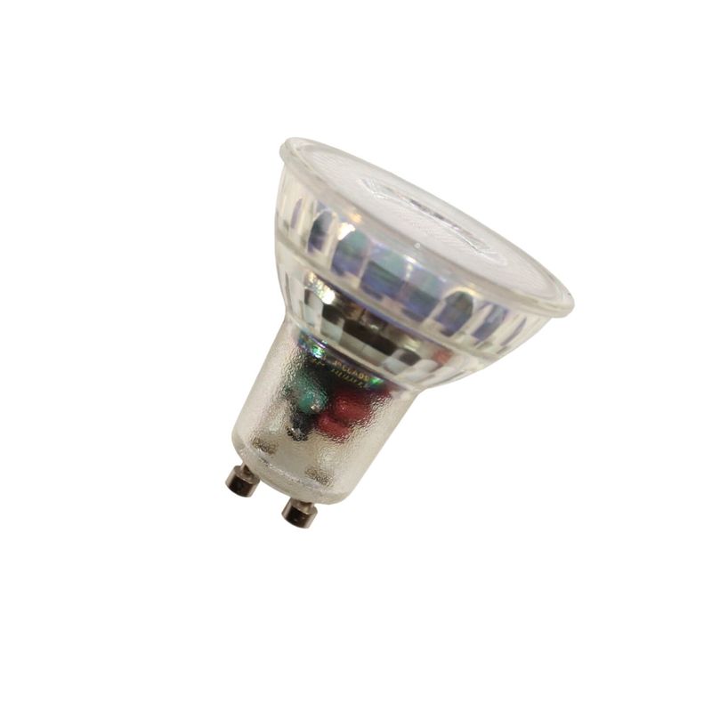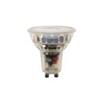 Ampolleta LED STUDIO formato GU10. Material de vidrio transparente con consumo de 7W y luz cálida 3000K.