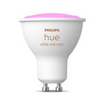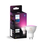 Ampolleta Philips Hue de formato GU10. Ideal para iluminar los espacios de tu hogar. Permite controlar los escenarios que desees a través de app o control de voz. Disponible en color blanco con consumo de 4.2W, luz cálida a fría y RGB. Compatible con Bluetooth y Bridge Hue. Mide Ø5 diámetro x 5,5 alto cm.