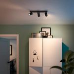 Foco sobrepuesto Philips Spot Kosipo triple dirigible. Ideal para ser instalado en interiores como living, comedores, dormitorios, oficinas, etc. No incluye ampolletas, su base es para tres GU10. Disponible en color negro. Mide 44 largo x 12 ancho x 9 alto cm.