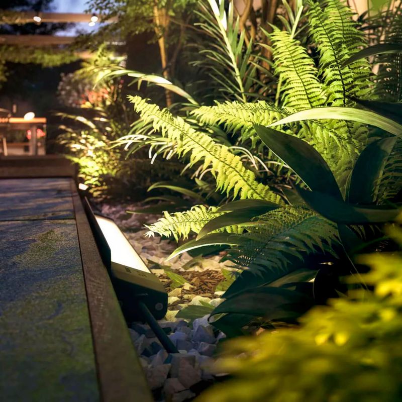 Ilumina grandes extensiones de tus espacios exteriores, como vallas, muros y setos, con luz blanca y de color. Como parte del sistema LowVolt, el foco lineal Amarant se conecta a una fuente de alimentación Philips Hue e incluso se pueden conectar entre sí, creando una pared continua de luz. Adquiere el Hue Bridge para mayor control (N10100709).