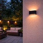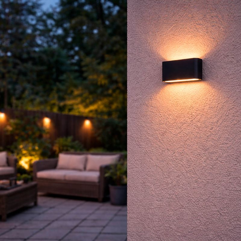 Apliqué mural LED de diseño moderno con iluminación bifocal, proyectando luz hacia arriba y hacia abajo para generar un efecto decorativo elegante. Su potencia de 6W con luz cálida crea ambientes acogedores y sofisticados, ideal para fachadas, patios, pasillos y muros exteriores. Cuenta con protección IP65, lo que garantiza resistencia al polvo y la humedad. Disponible en color blanco y negro, adaptándose fácilmente a distintos estilos arquitectónicos.