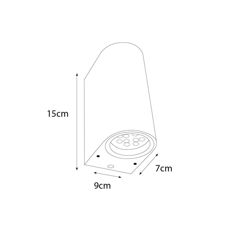 Apliqué Led Studio modelo Jk bifocal IP65 ideal para exteriores como fachadas, quinchos y jardines. Iluminación integrada.