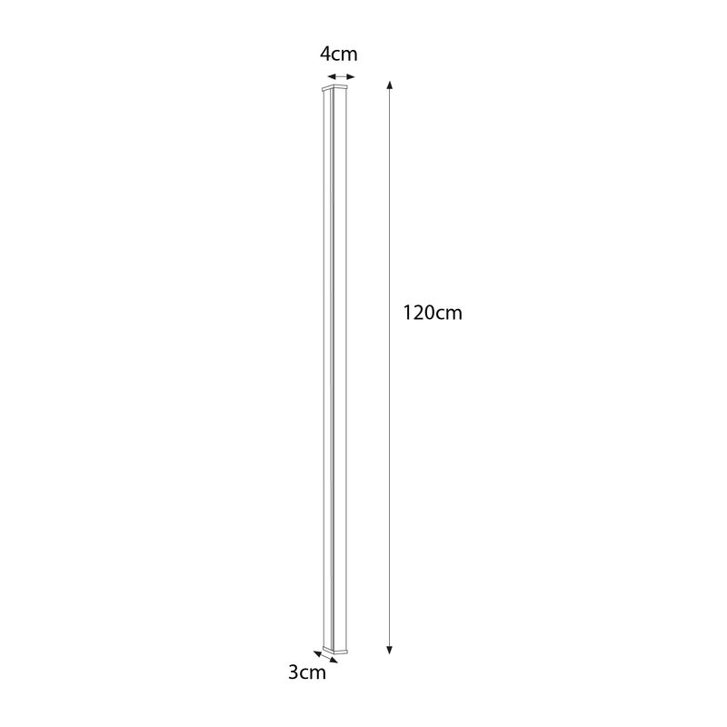 Apliqué de muro lineal mediano. Ideal para ser instalo en interiores como living, comedores, dormitorios, oficinas, etc. Disponible en color negro y con luz cálida. Mide 3 largo x 4 ancho x 120 alto cm.