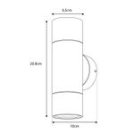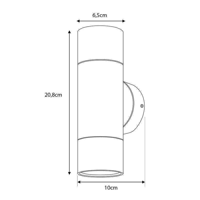 Apliqué de muro de diseño moderno, ideal para iluminar y destacar muros en exteriores e interiores protegidos. Su emisión bifocal proyecta luz en dos direcciones, creando un atractivo efecto decorativo y arquitectónico. Cuenta con protección IP54, resistente al polvo y salpicaduras, ideal para fachadas, terrazas y accesos. No incluye ampolletas GU10.