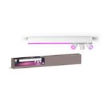 Obtenga iluminación funcional y ambiental en una sola lámpara. El apliqué de techo Centris blanco tiene una iluminación de techo fija difusa y tres focos con luz de acentuación que pueden orientarse de forma individual. Configure cada luz de la luminaria en cualquiera de los millones de colores para lograr una apariencia verdaderamente única.