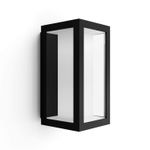 Apliqué Philips Hue Impress Color. Ideal para ser instalado en exteriores bajo techo como terrazas, quinchos, jardines, etc. Prolonga tus veladas con la iluminación exterior Philips Hue, con colores intensos o luz blanca cálida a fría. Requiere Hue Bridge para mayor control (N10100709) Mide 12 largo x 14 ancho x 24 alto cm.