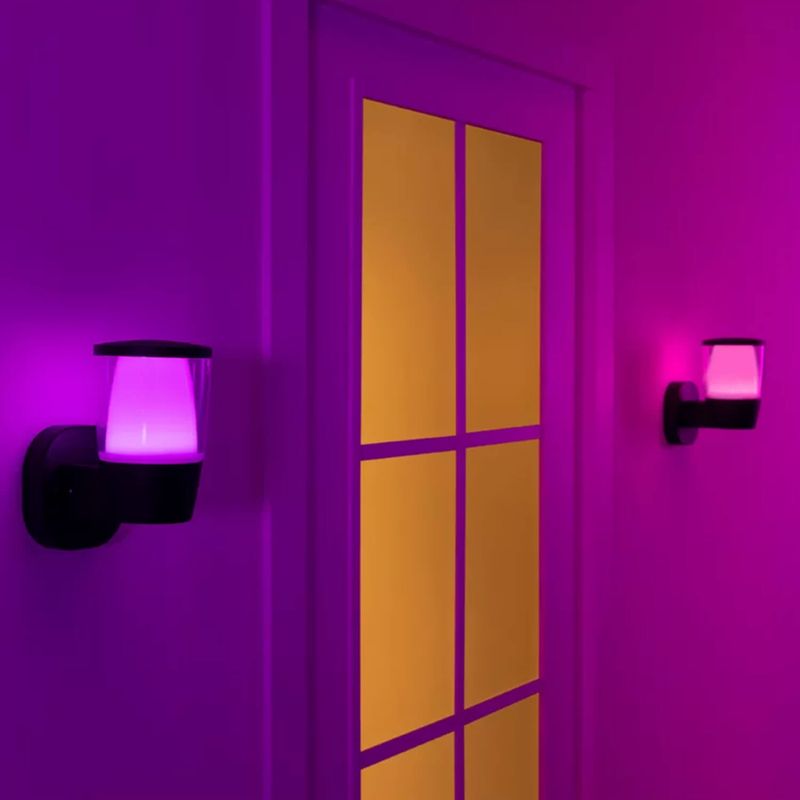 Este apliqué conectado directo a la tensión eléctrica, resistente a la intemperie y de diseño elegante dan un nuevo y emocionante giro a los clásicos apliques de pared para exteriores. Instálalas en tu jardín delantero, jardín trasero, balcón o porche para obtener 400 lúmenes de hermosa luz. Selecciona entre millones de colores, blancos cálidos a fríos y modos de luz dinámicos mediante la conexión a tu Wi-Fi existente.