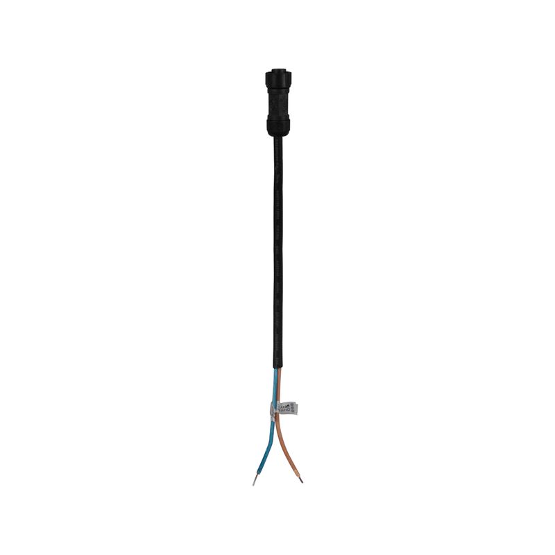 Cable conector hembra, un extremo es de 2 pines y el otro desnudo para conexión. Compatible con productos monocromáticos de la línea C101. Disponible en color negro. Mide 20 largo x Ø1,5 diámetro x 4 alto cm.