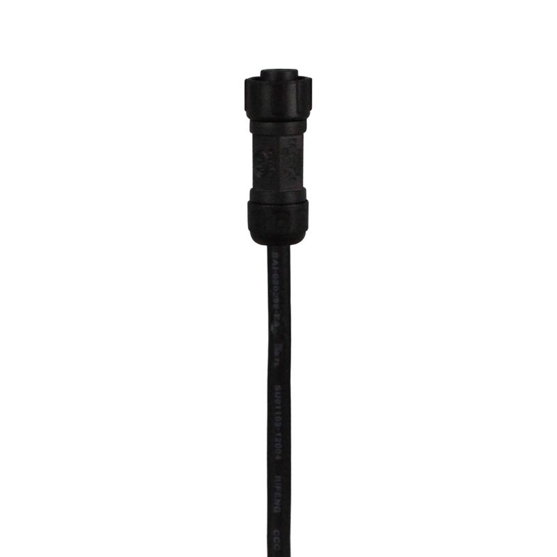 Cable conector hembra, un extremo es de 2 pines y el otro desnudo para conexión. Compatible con productos monocromáticos de la línea C101. Disponible en color negro. Mide 20 largo x Ø1,5 diámetro x 4 alto cm.