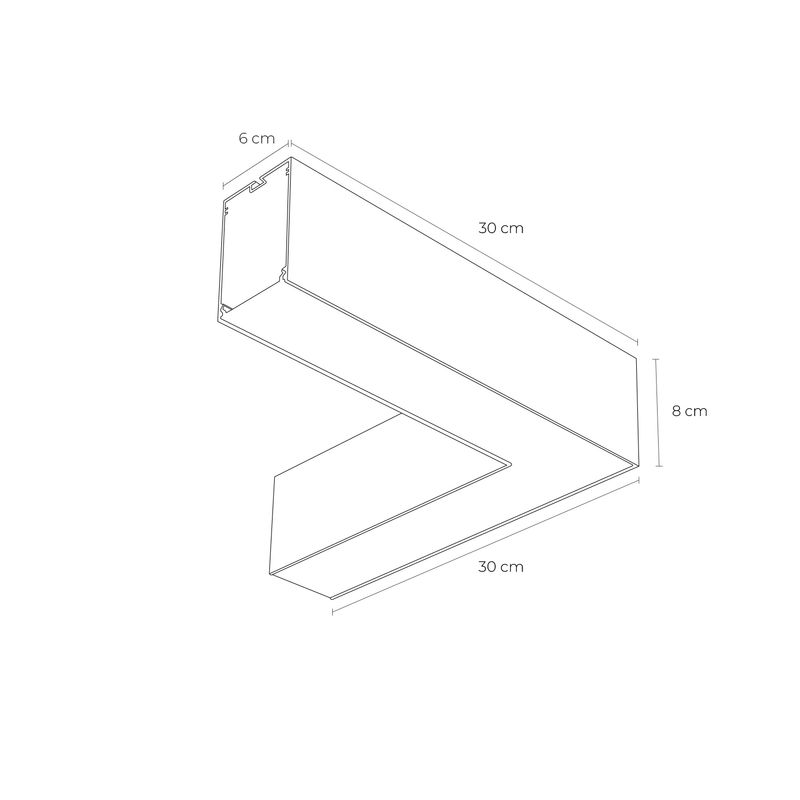 Conector en L para lámpara colgante o sobrepuesta 20W. Ideal para ser usado en interior ya que tiene protección IP20. Compatible con lámpara lineal C15400035. Disponible en color negro, luz neutra. Mide 30 largo x 6 ancho x 8 alto cm.