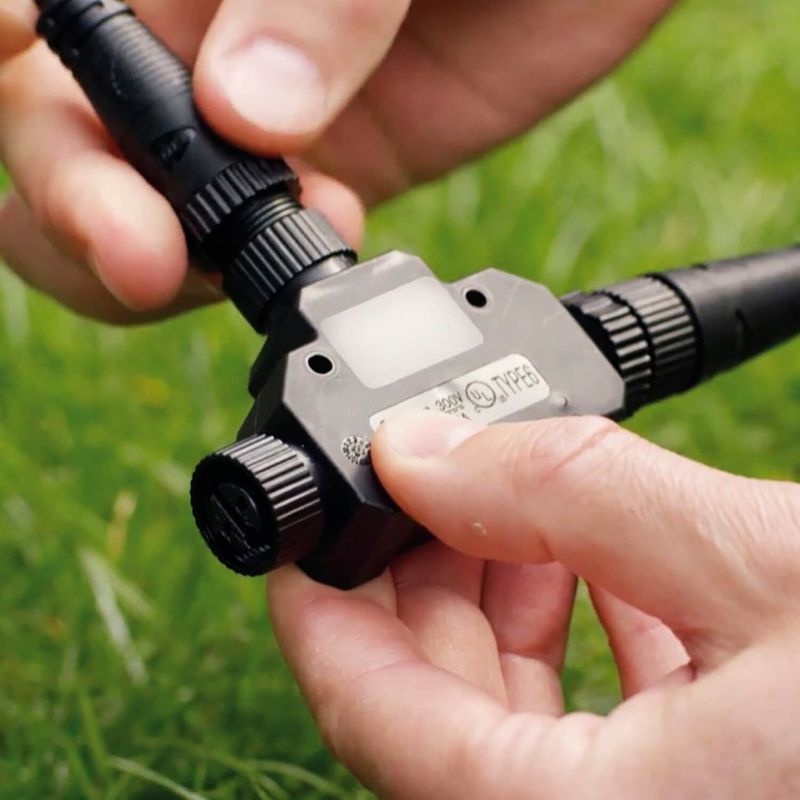 ¡Personaliza fácilmente tu iluminación inteligente para exteriores! El conector en T ofrece mayor flexibilidad para unir entre sí las luces de exterior LowVolt, lo que le permite añadir espacio entre las luces o prolongar tu configuración por todo el jardín.