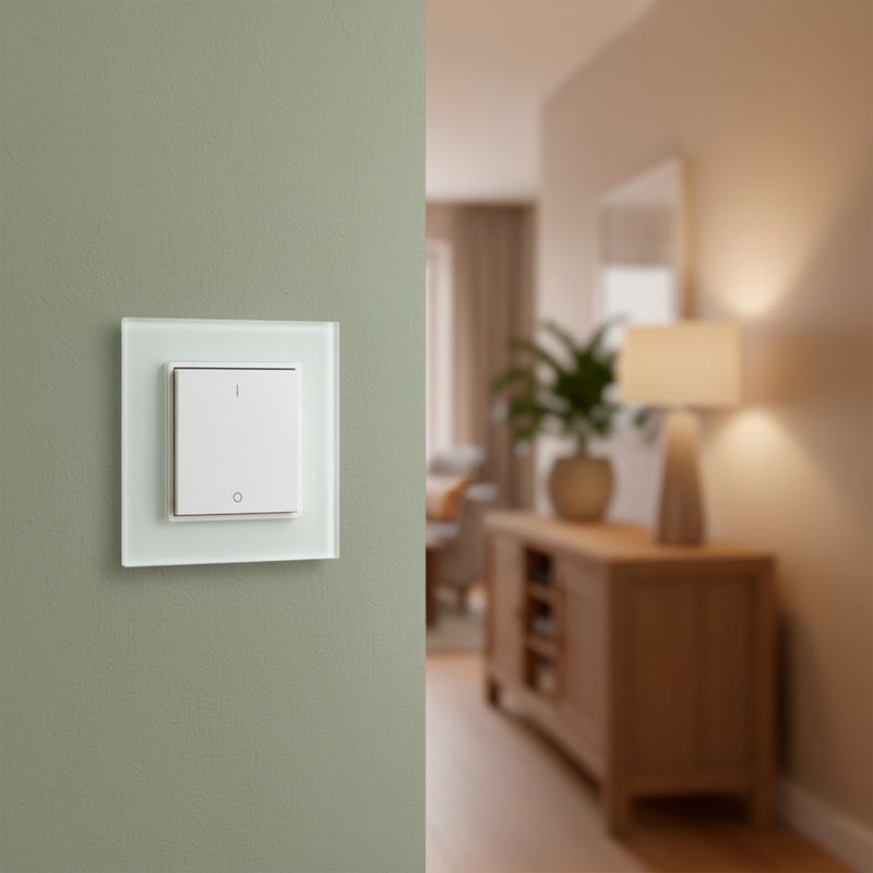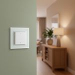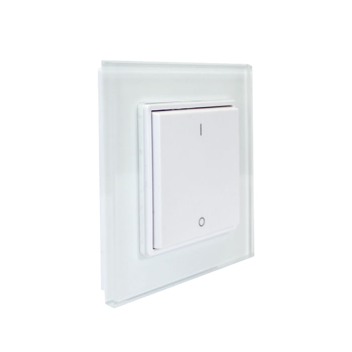 Switch para muro con bateria. Compatible con cajas electricas de interruptores. Cumple las misma función que los productos de referencia C19600006 y C19600008. Voltaje de Operación de 4.5V DC. Tipo de Salida Señal RF. Aplicación: Controla cualquier receptor de la serie 1009. Solo controla 1 color. Compatible con Control Remoto de radiofrecuencia de 1 Canal x 10A (Ref: C19600043-C19600010-C19600046-C19600033-C19600059-C19600034-C19600042).