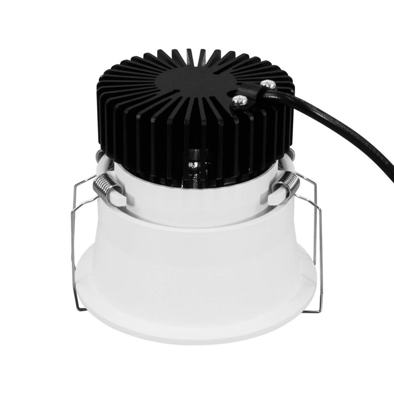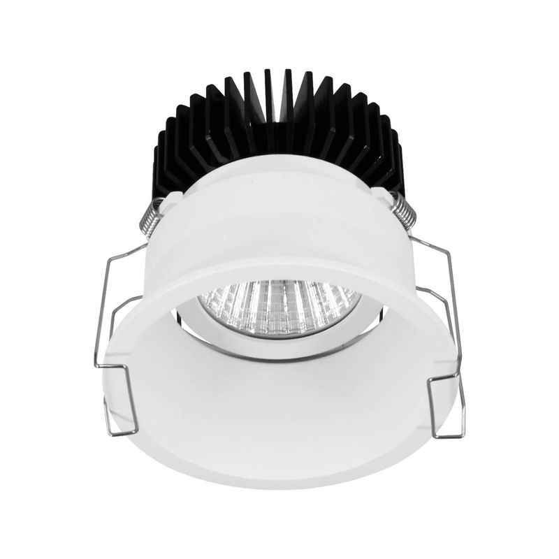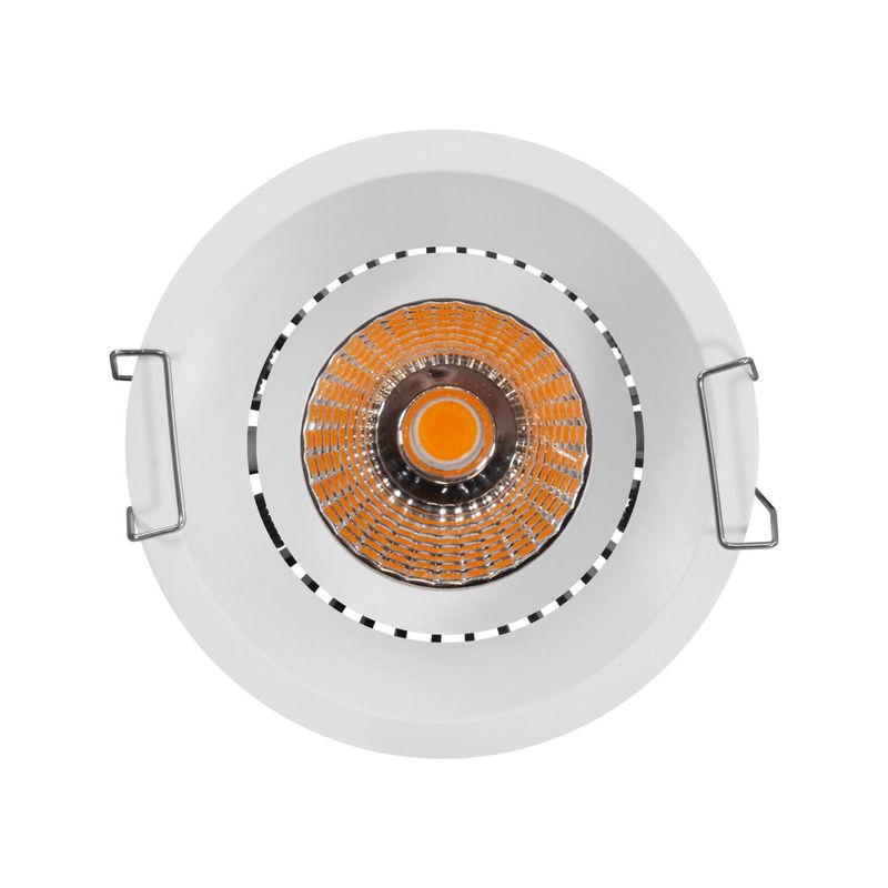 Downlight embutido retraído redondo. Ideal para ser instalado en interiores como living, comedores, dormitorios, oficinas, etc. Disponible en color blanco con luz cálida. Mide Ø8,5 diámetro x Ø7,5 diámetro de corte x 7 alto cm.
