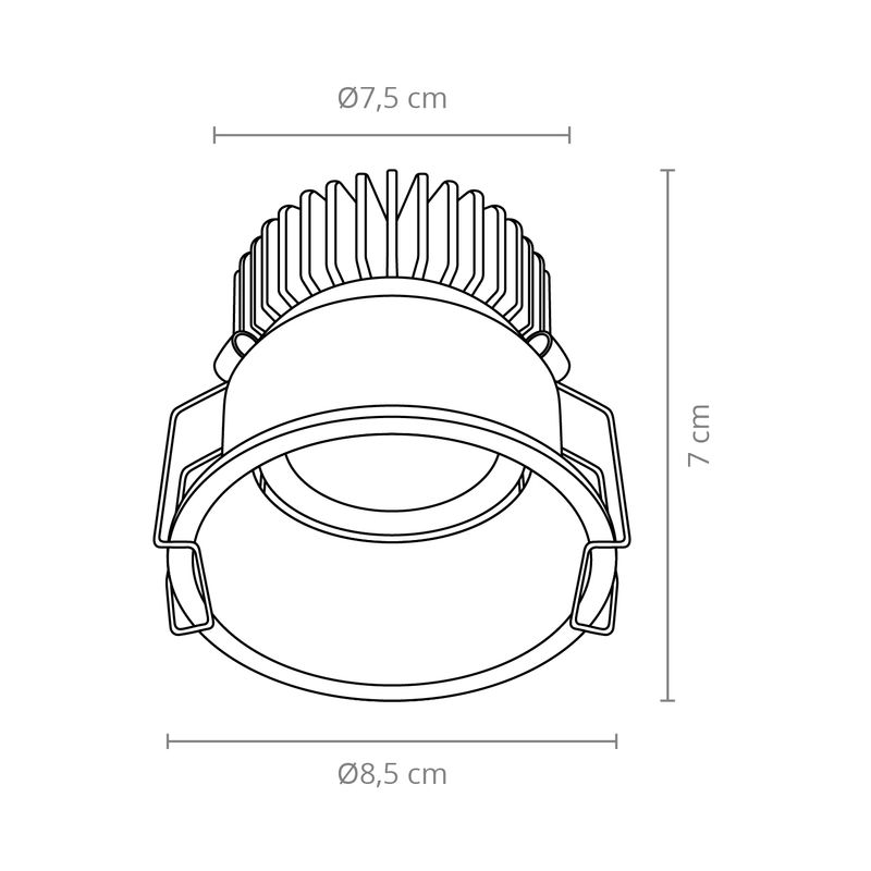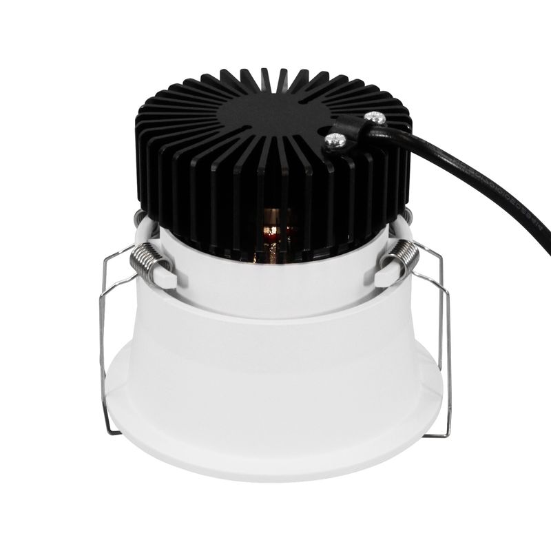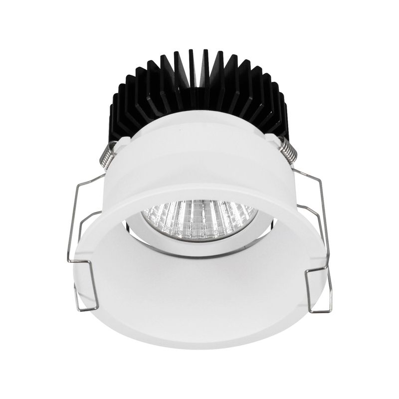 Downlight embutido retraído redondo. Ideal para ser instalado en interiores como living, comedores, dormitorios, oficinas, etc. Disponible en color blanco con luz neutra. Mide Ø8,5 diámetro x Ø7,5 diámetro de corte x 7 alto cm.