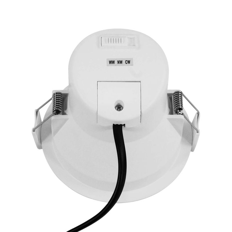 Su diseño redondo y slim se integra discretamente en cualquier techo. Su característica principal es el switch CCT, que te permite escoger la temperatura de luz que prefieras (cálida, neutra o fría) antes de la instalación. Esto te da total flexibilidad para crear el ambiente ideal en cualquier momento. Está disponible en elegante color blanco, negro o bicolor.