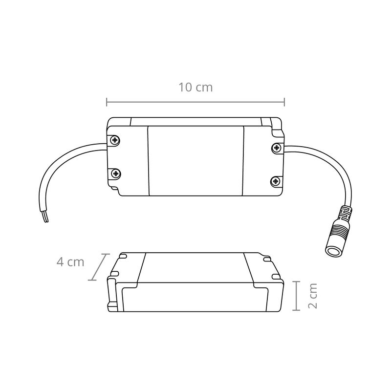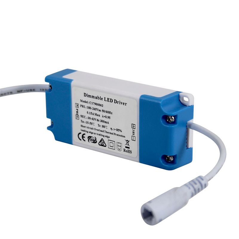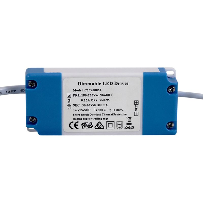 Driver led dimerizable. Compatible con paneles y plafones de la línea C179, con potencia de hasta 18W. Ideal para ser usado en interior ya que tiene protección IP20. Disponible en color blanco con azul. Mide 10 largo x 2 ancho x 4 alto cm.