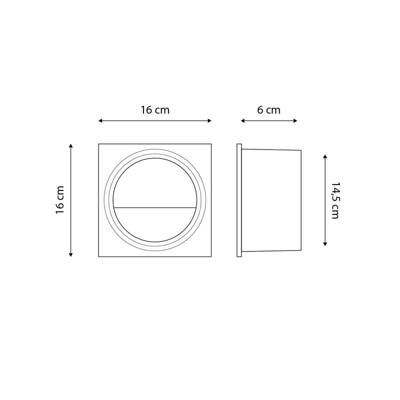 Embutido de muro calipso cuadrado de luz cálida y 7 watts de potencia. Ideal para ser instalado en exteriores como terrazas, quinchos, jardines, pasillos, etc. Disponible en color negro. Mide 16 ancho x 16 alto x 6 largo cm.