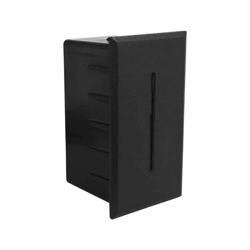 Embutido de muro calipso vertical de luz cálida y 1 watts de potencia. Ideal para ser instalado en exteriores como terrazas, quinchos, jardines, pasillos, etc. Disponible en color negro. Mide 5,8 ancho x 10,2 alto x 5,4 largo cm.
