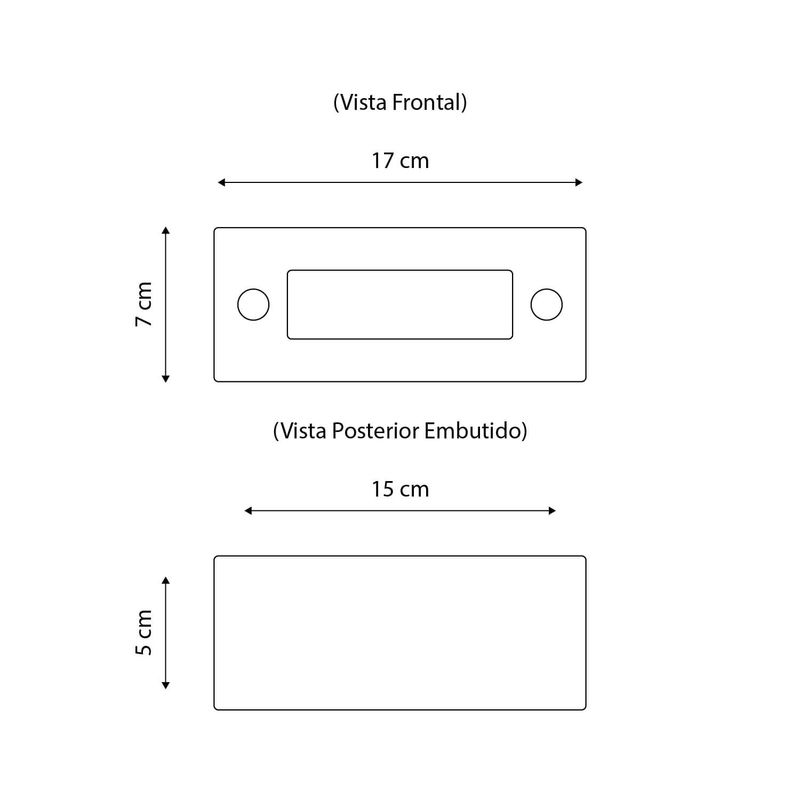 Medidas para embutir: 15 cm de ancho x 5 cm de alto x 5.5 cm de profundidad