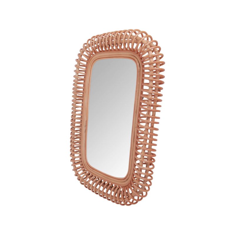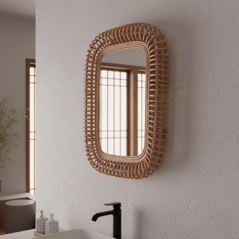 Espejo Led Studio Rattan Vietcoo Vietnam combina el encanto natural del ratán con un diseño rectangular estilizado. Con medidas de 80 x 50 cm y un marco de 8 cm de profundidad, es ideal para aportar calidez y textura a espacios interiores como recibidores, dormitorios o salones. Su estilo orgánico y contemporáneo lo hace perfecto para ambientes bohemios o naturales.