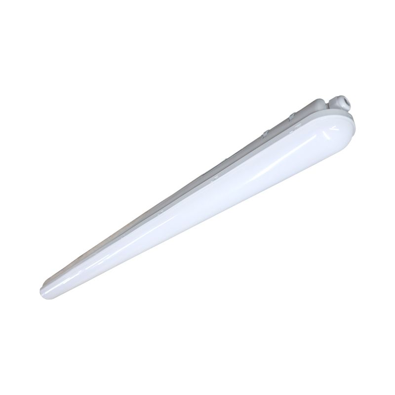 Estanco empavonado de color gris y luz cálida. Ideal para ser instalado en exterior ya que tiene IP65. Mide 120 largo x 10 ancho x 8 alto cm.