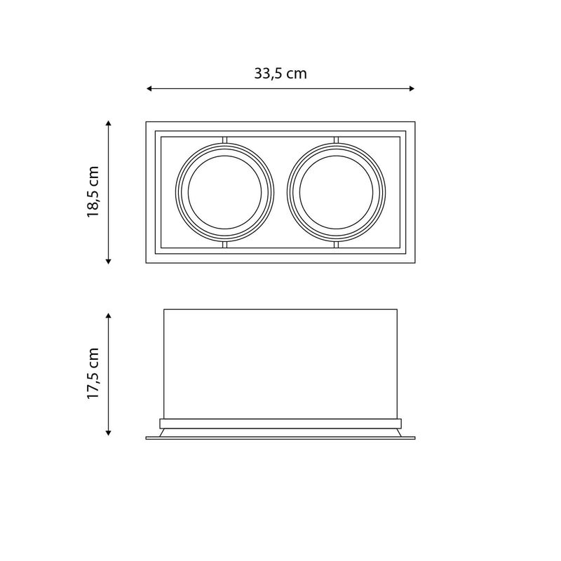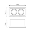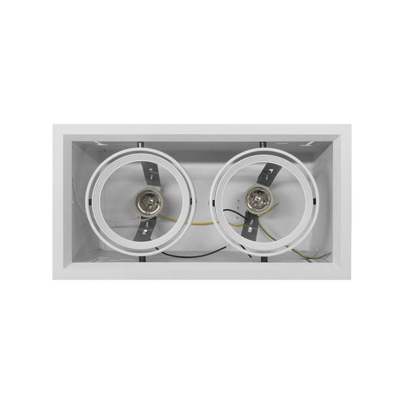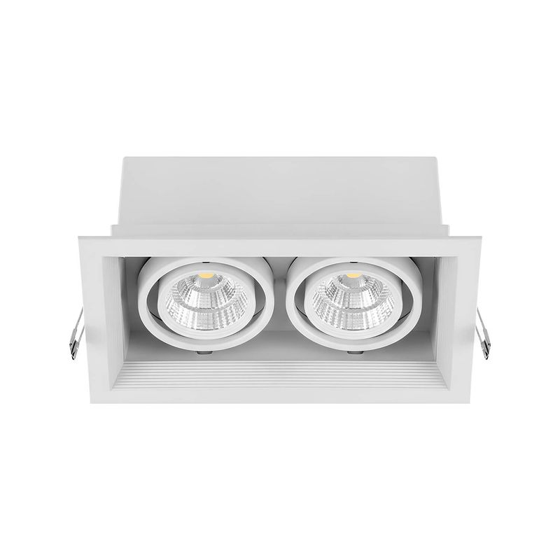 Foco embutido Puzzle doble rectangular. Ideal para ser instalado en interiores como living, comedores, dormitorios, oficinas, etc. Disponible en color blanco. Mide 33,5 largo x 18,5 ancho x 17,5 alto cm.
