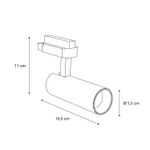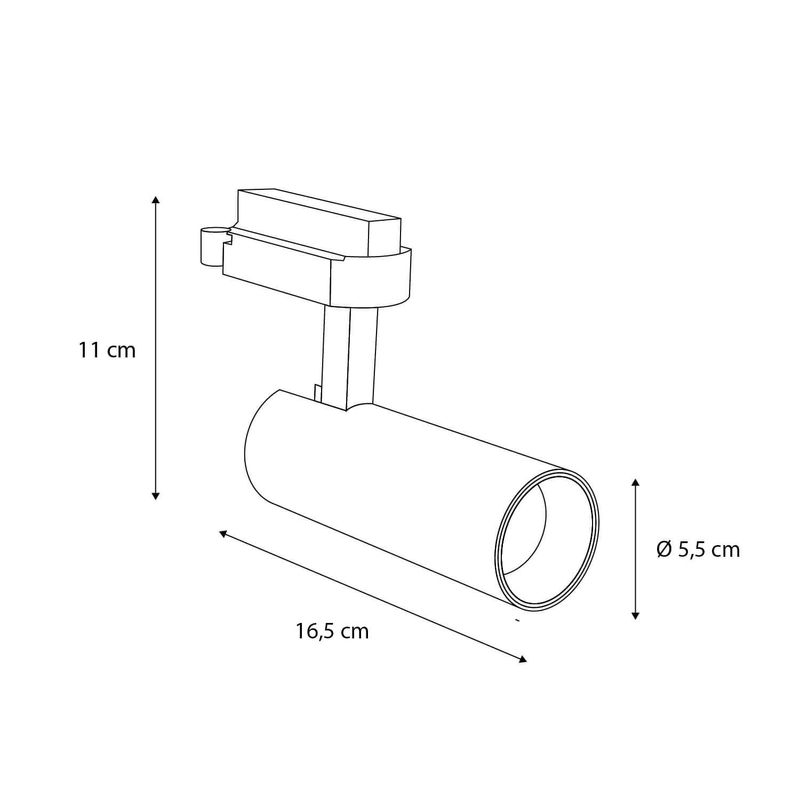 Foco riel monofásico tubular dirigible. Ideal para ser instalado en interiores como living, comedores, dormitorios, oficinas, etc. Disponible en color negro, blanco y dorado con luz cálida. Mide Ø5,5 diámetro x 16,5 ancho x 11 alto cm.