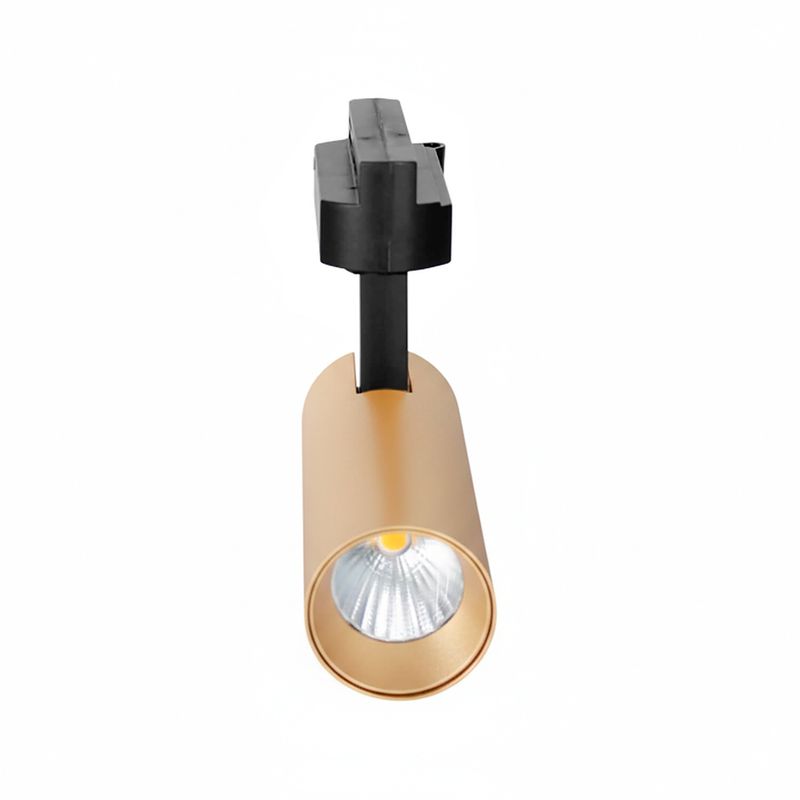 Foco riel monofásico tubular dirigible. Ideal para ser instalado en interiores como living, comedores, dormitorios, oficinas, etc. Disponible en color negro, blanco y dorado con luz cálida. Mide Ø4,5 diámetro x 12,5 ancho x 11 alto cm.