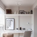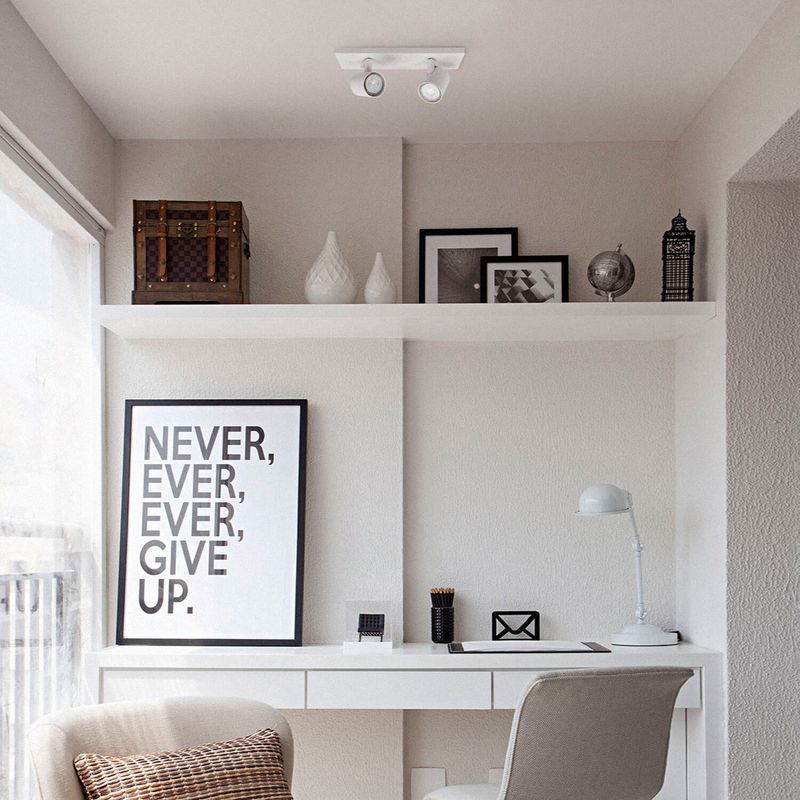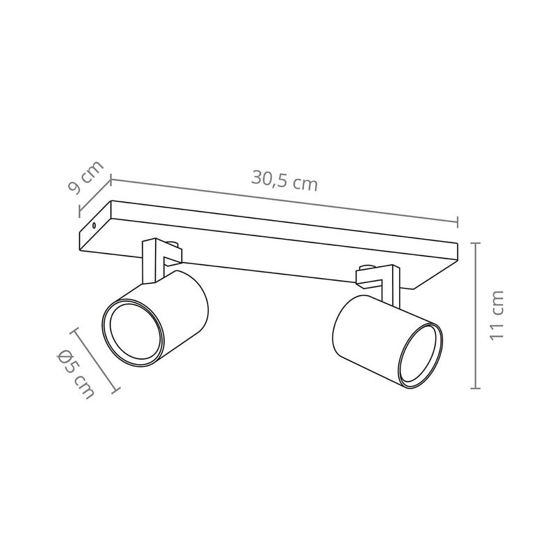 Foco sobrepuesto a cielo o muro doble, ideal para iluminar los espacios de tu hogar. Mide 30,5 largo x 9 ancho x 11 alto cm.