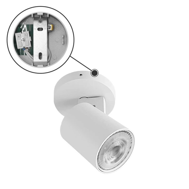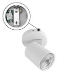Foco sobrepuesto Marcus dirigible simple. Ideal para ser instalado en interiores como living, comedores, dormitorios, oficinas, etc. Disponible en color blanco y negro. Mide Ø8 diámetro x 11 alto cm. No incluye ampolleta.