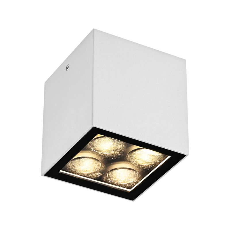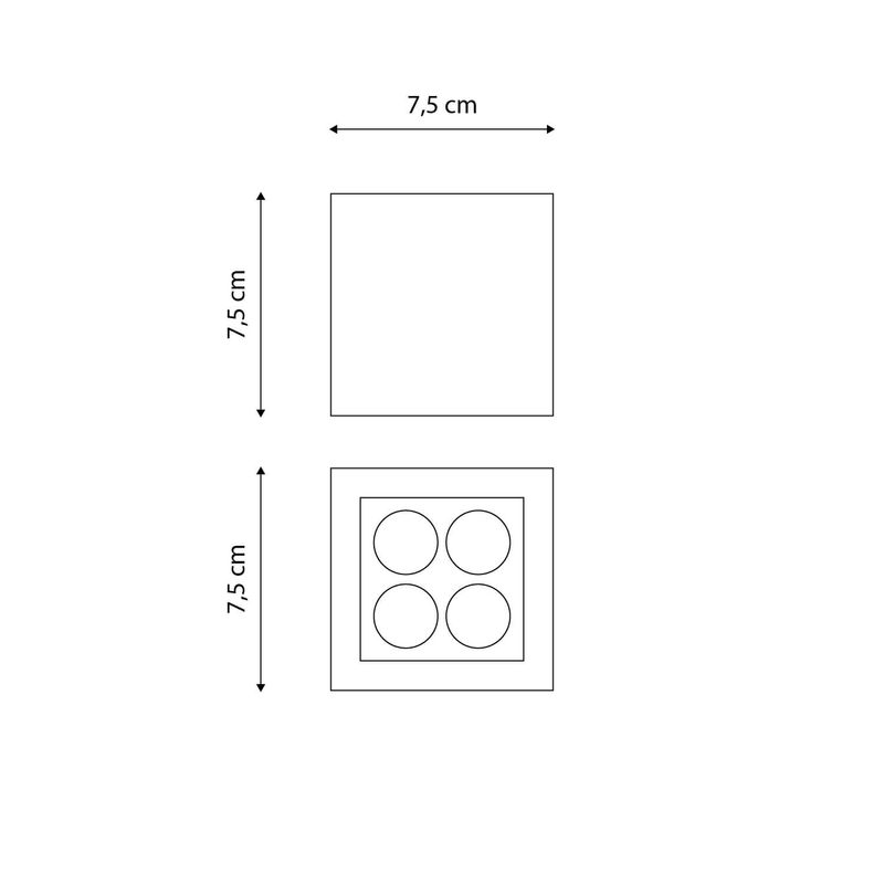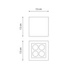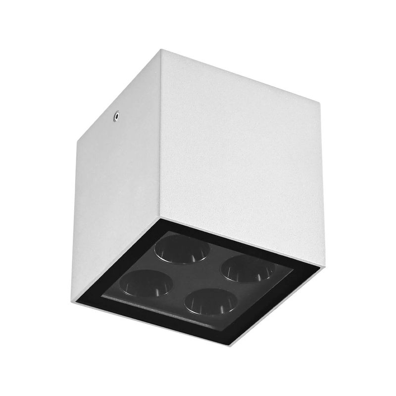 Foco sobrepuesto Dante cuadrado. Ideal para ser instalado en exteriores como terrazas, quinchos, jardines, pasillos, etc. Disponible en color negro, blanco y gris, con luz cálida. Mide 7,5 largo x 7,5 ancho x 7,5 alto cm.