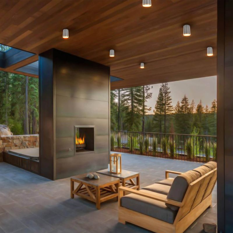 El foco sobrepuesto LED Studio Ross Small es la solución ideal para una iluminación funcional y de acento en tus espacios exteriores. Con 12W de potencia, emite una agradable luz cálida, perfecta para crear un ambiente acogedor en terrazas, quinchos, jardines y pasillos.