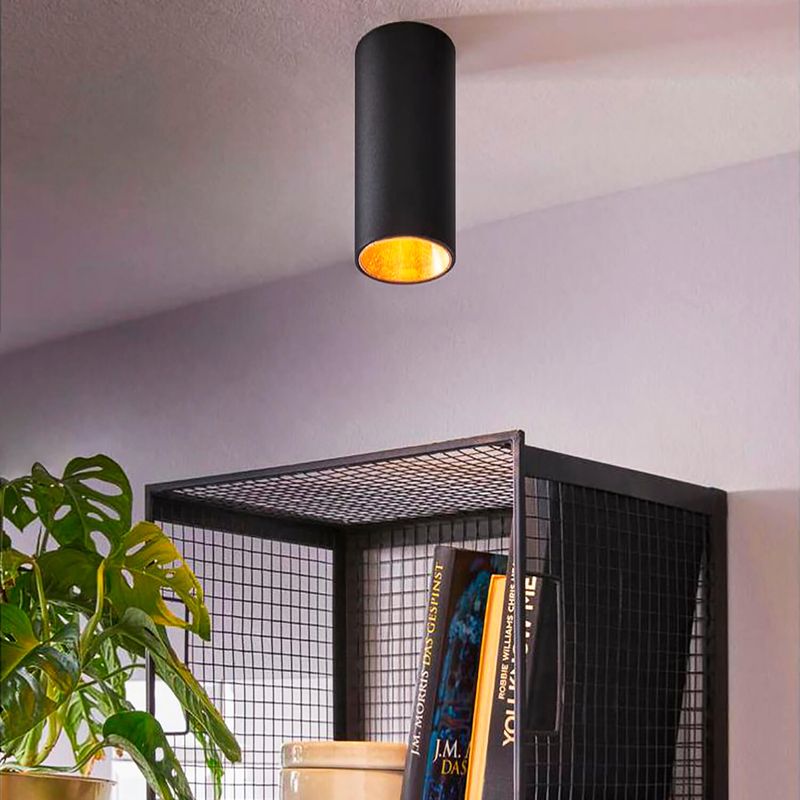 Foco sobrepuesto simple redondo. Ideal para ser instalado en interiores como living, comedores, dormitorios, oficinas, etc. Disponible en el color negro con dorado, negro y blanco. Mide Ø7 diámetro x 25,5 alto cm. Iluminación integrada.