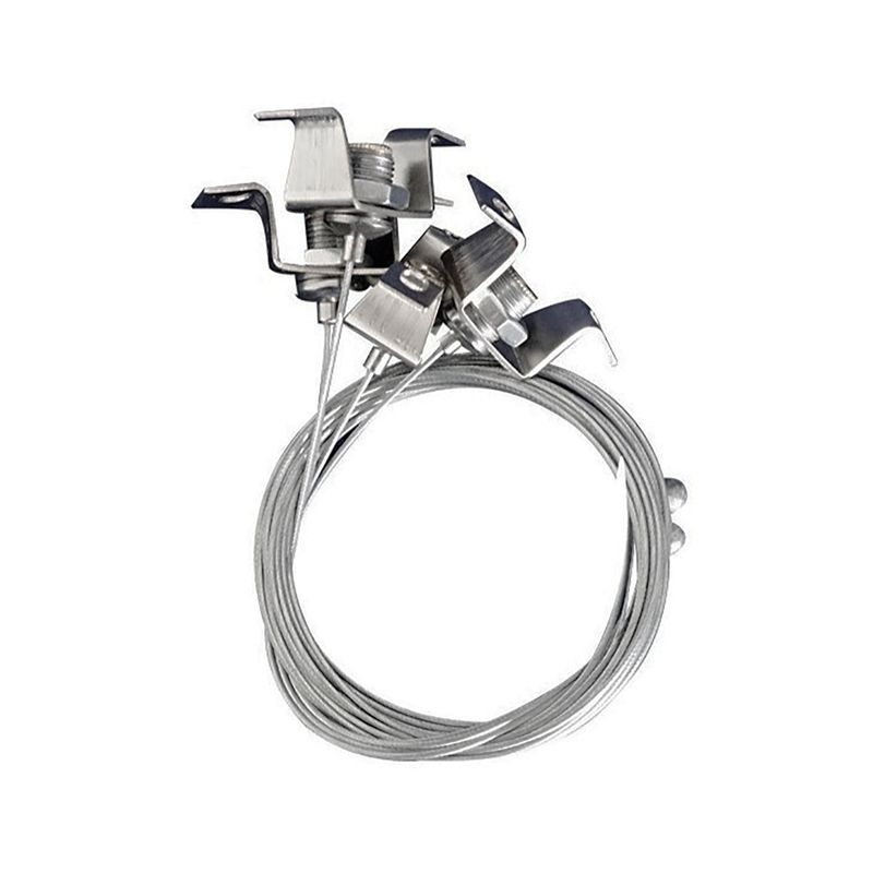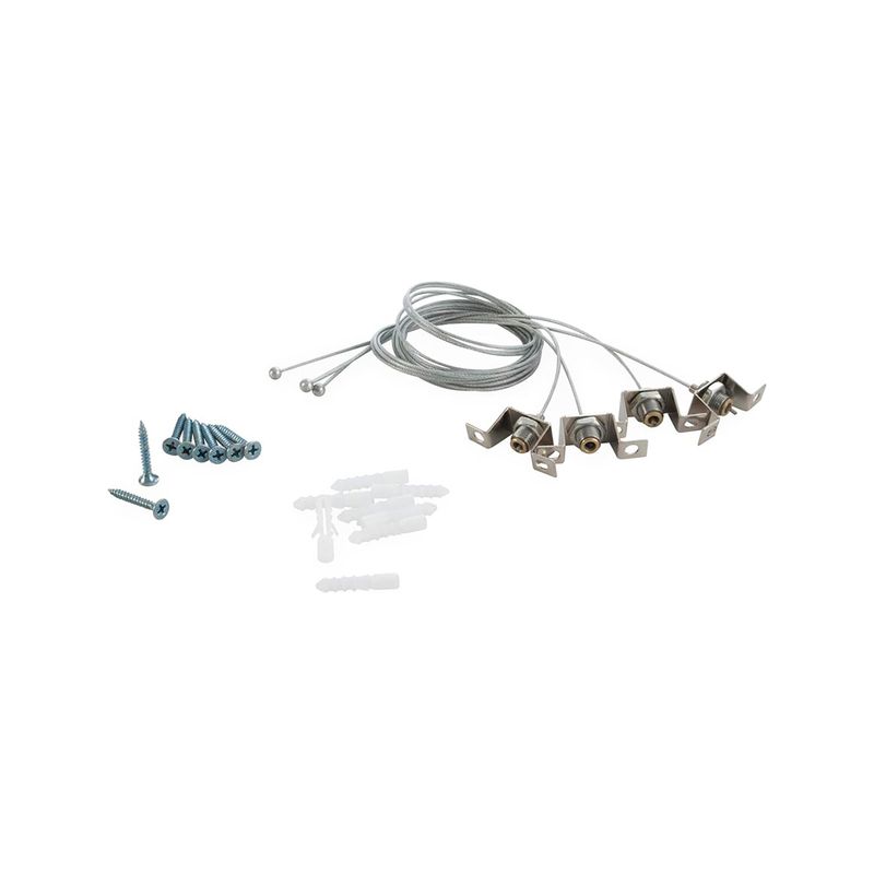 Kit de 4 piolas de acero inoxidable, para suspender rieles. Ideal para ser instalado en interiores como living, comedores, cocinas, oficinas, etc. Disponible en color plateado. Mide 45 largo x 15 ancho x 100 alto cm, el alto total es regulable.