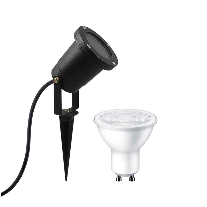 KIT DE ESTACA MEDIA IP65 + AMPOLLETA GU10 4.7W LUZ CÁLIDA