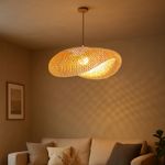 La lámpara colgante Led Studio Bamboo Fortune grande destaca por su estructura de fibras entrelazadas que proyectan una luz cálida y envolvente. Ideal para dar un aire orgánico y sofisticado a tus espacios interiores, ya sea sobre una mesa de comedor, en el living o en una zona de descanso. Incluye cordón (C33500019).