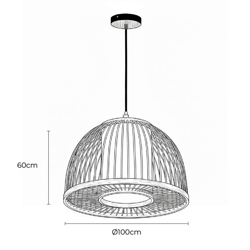 La lámpara colganet Bamboo Saigon Grande combina diseño orgánico y elegancia contemporanéa en una pieza decorativa de alto impacto visual. Fabricada en finas varillas de bambú natural, su estructura crea un delicado juego de líneas que aporta calidez, textura y sofisticación a cualquier ambiente. Incluye cordón (C33500019), no incluye ampolleta.