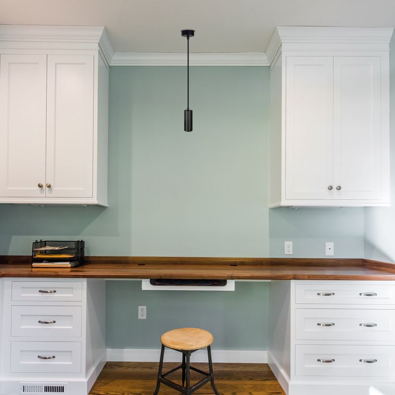 Lámpara colgante Cilindro. Ideal para ser instalada en interiores como living, comedores, dormitorios, oficinas, etc. Disponible en color negro. Iluminación integrada.