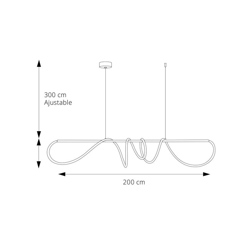 Su diseño único y curvo en color negro y cobre le da un estilo elegante que se adapta a cualquier decoración. Con 2 metros de largo y una altura ajustable hasta 3 metros, puedes instalarla sobre una mesa o en espacios de doble altura. Además, su protección IP20 la hace ideal para interiores.