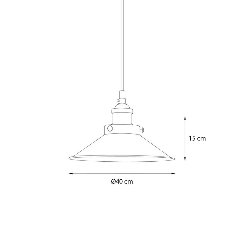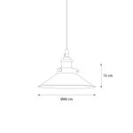 La lámpara colgante Nox presenta un diseño sobrio y moderno con acabado negro tanto en el exterior como en el interior, ofreciendo una iluminación más contenida y elegante. Fabricada en hierro, mide 40 cm de diámetro y 15 cm de alto, perfecta para espacios interiores o bajo alero. No incluye ampolleta E27, incluye cordón (C33500019).