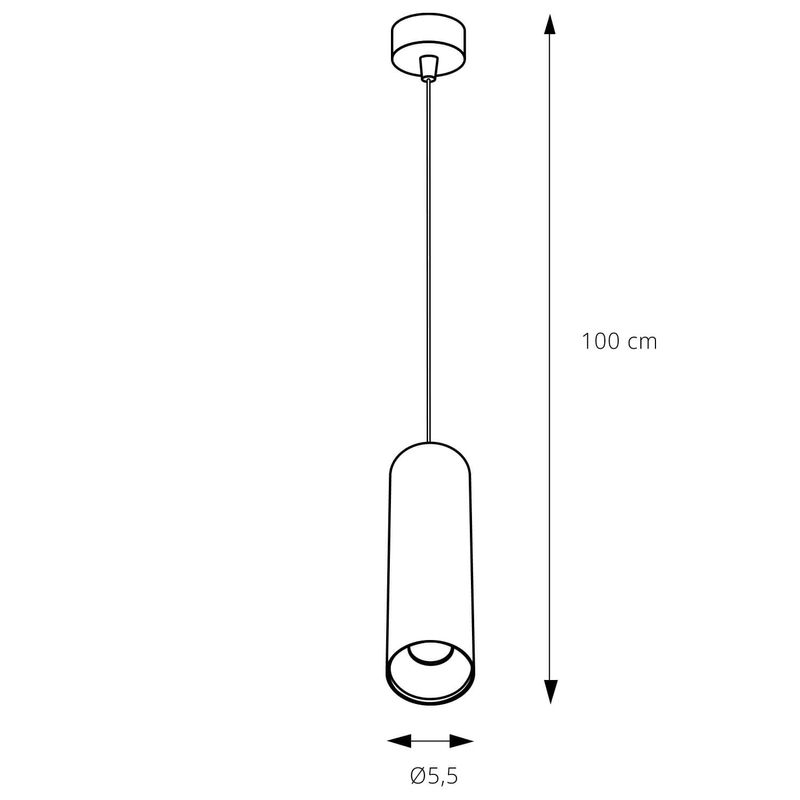 Mide Ø5,5 diámetro x 20 alto cm, el alto total es regulable. No incluye ampolleta GU10.