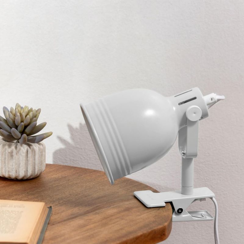 La más práctica y útil. Con este tipo de lámpara, puedes ahorrar espacio en un escritorio o velador. Su cabeza móvil la hace entretenida y versátil. De tamaño pequeño, lo que te permitirá moverla de lugar cuantas veces quieras, dependiendo dónde quieras iluminar. Disponible en color negro, blanco, azul, rosa o menta. No incluye ampolleta E14.