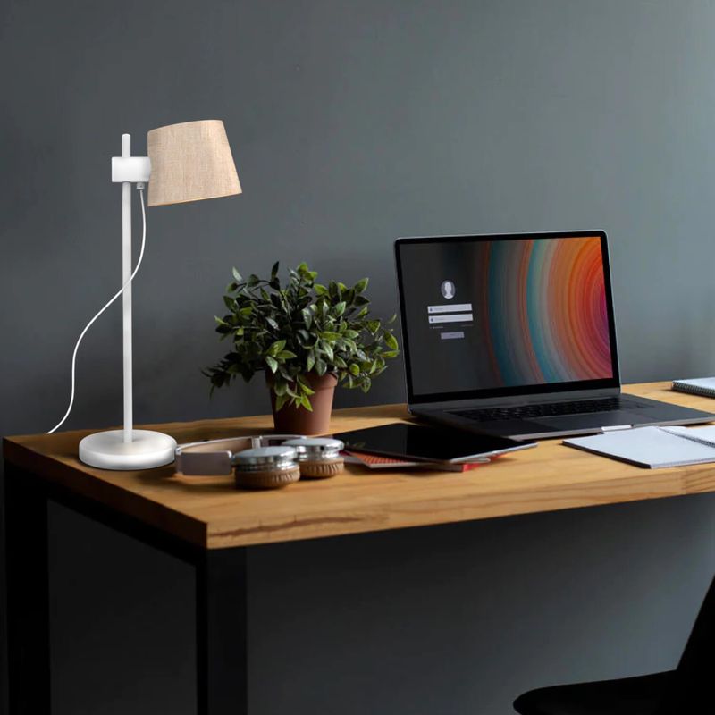 Lámpara de mesa Hotel redonda ajustable. Ideal para ser instalada en interiores como living, dormitorios, oficinas, hoteles, etc. Disponible en color blanco y negro. Mide Ø20 diámetro x 26 ancho x 56 alto cm. No incluye ampolleta E27
