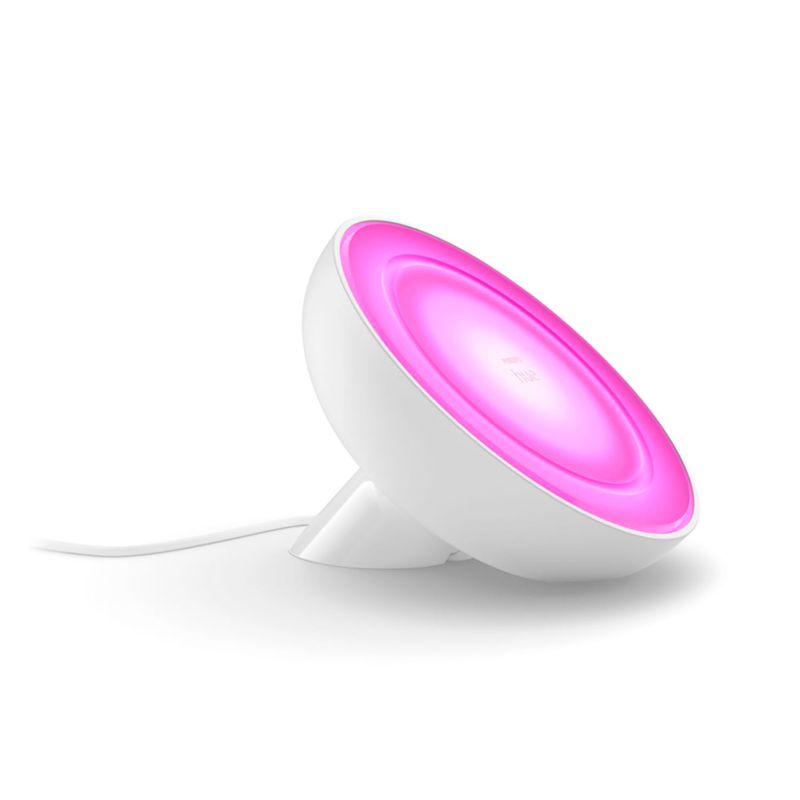 Lámpara de mesa Philips Hue Bloom. Ideal para ser instalada en interiores como living, comedores, dormitorios, pasillos, etc. Disponible en color blanco con luz RGB. Agrega el Bridge Hue para desbloquear más funciones. Mide Ø13 diámetro x 10 alto cm.