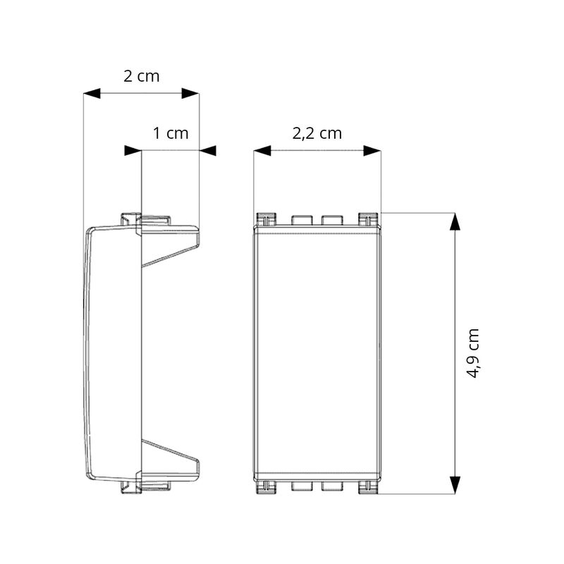 Módulo ciego Vimar Arké individual. Permite obturar la salida de cables para módulos sin uso dejándolos más pulcros y seguros a la vista. Disponible en color gris, blanco y grafito. Mide 2,2 largo x 2 ancho x 4,9 alto cm.