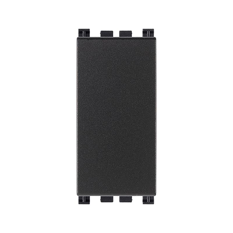 Módulo ciego Vimar Arké individual. Permite obturar la salida de cables para módulos sin uso dejándolos más pulcros y seguros a la vista. Disponible en color gris, blanco y grafito. Mide 2,2 largo x 2 ancho x 4,9 alto cm.
