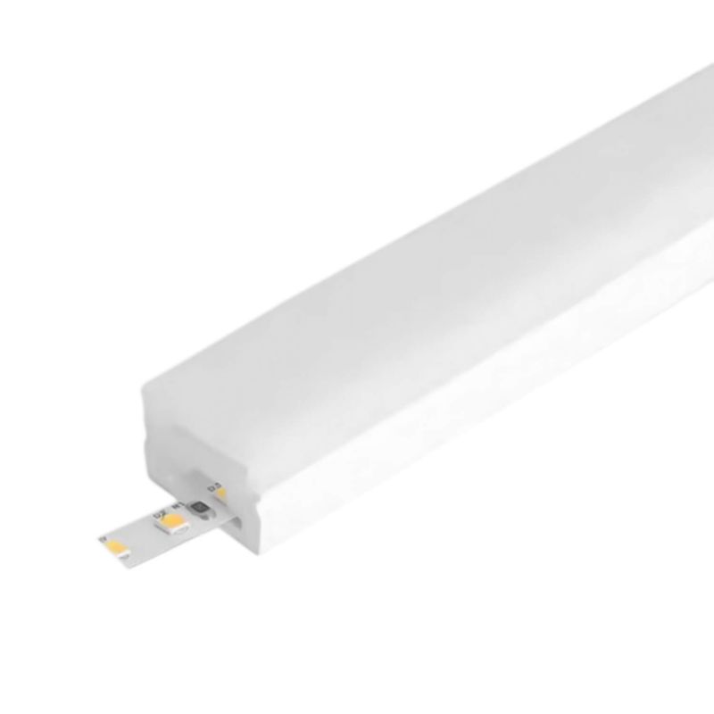 Diseño estructural, fabricado con materiales de gel de silice. Puede funcionar a altas temperaturas o en mal tiempo al aire libre. No corrosivo, Insoluble en sustancias ácidas y alcalina. Se recomienda para su correcto funcionamiento, debe usarse con cinta LED Studio en formato Chip COB de 8 o 10mm.