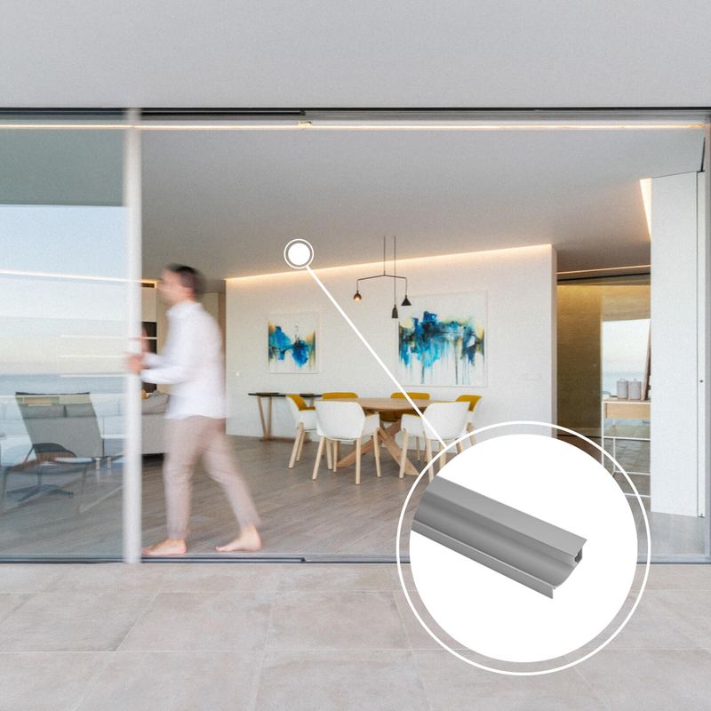 Perfil esquinero para cintas led. Ideal para ser instalado tanto en exteriores como en interiores. Disponible en color aluminio. Mide 200 largo x 4,6 ancho x 1.34 alto cm.