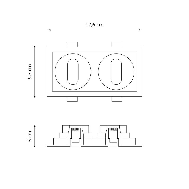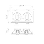 Porta GU10 Led Studio rectangular doble. Ideal para ser instalado en interiores como living, comedores, dormitorios, oficinas, etc. No incluye ampolleta, su base es para GU10. Disponible en color blanco y negro. Mide 17,6 largo x 9,3 cm ancho, y 16 largo x 8 cm ancho de corte.