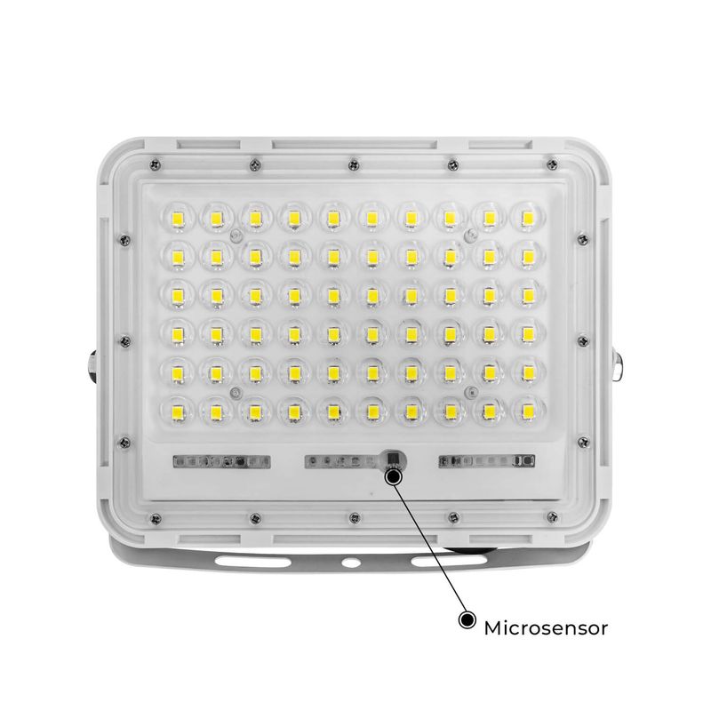 PROYECTOR SOLAR CON CONTROL REMOTO 2000LM 200W LUZ NEUTRA IP65 BLANCO